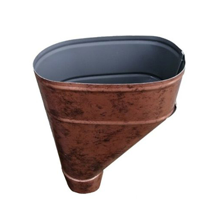 L’imbuto/bacinella è l’elemento che consente la confluenza di due pluviali in uno solo, al fine di facilitare lo scarico delle acque piovane. Le bacinelle sono in lamiera 5/10 e alluminio 6/10.